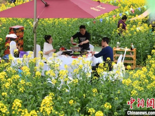 花より団子ならぬ花より锅!菜の花畑で名物のピリ辛锅楽しむ重庆市民